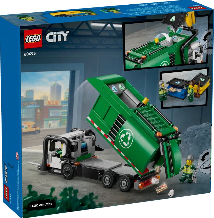 - TOY TRUCK FOR RECYCLING PLAY – Kids ages 7+ can enjoy hours of fun with the LEGO® City Recycling Truck (60495) featuring realistic details and functions that bring recycling adventures to life