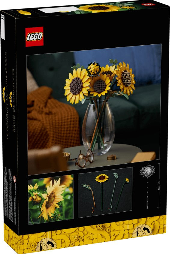 • LEGO® SUNFLOWERS – The bouquet includes 6 sunflowers in various stages: 1 sunflower bud, 3 sunflowers beginning to bloom and 2 big fully opened sunflowers
