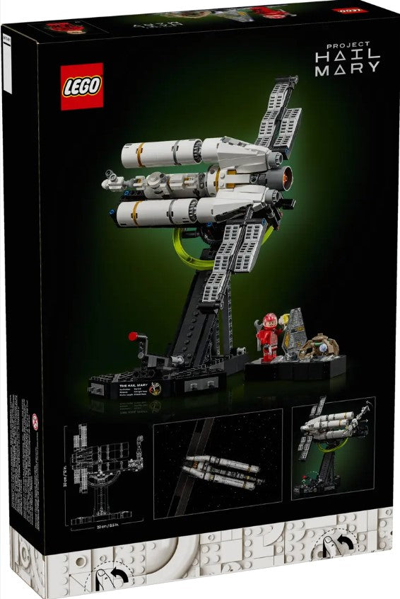 - DIMENSIONS – The model, including the display stand, in this 830-piece LEGO® Icons Project Hail Mary building set measures over 12 in. (30 cm) high, 9.5 in. (25 cm) long, and 8.5 in. (22 cm) wide