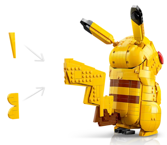 - ICONIC POKÉMON MODEL – This LEGO® Pikachu figure is instantly recognizable with its yellow body, red cheeks and lightning-flash tail with either a heart-shaped tip or flat end to show its gender
