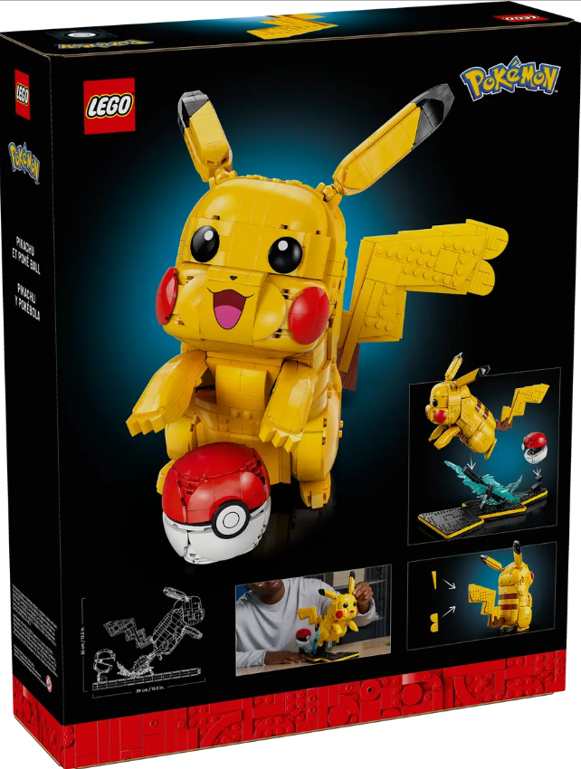 DIMENSIONS – This 2,050-piece Pikachu gift of a Pokémon model figure with display stand measures over 13.5 in. (35 cm) tall, 10.5 in. (26 cm) wide and 15.5 in. (39 cm) deep