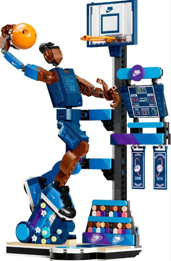 - Kids’ sports toy – A basketball hoop, scoreboard, championship banner and spectators complete the slam dunk scene and there are fun LEGO® and Nike Easter eggs for fans to discover